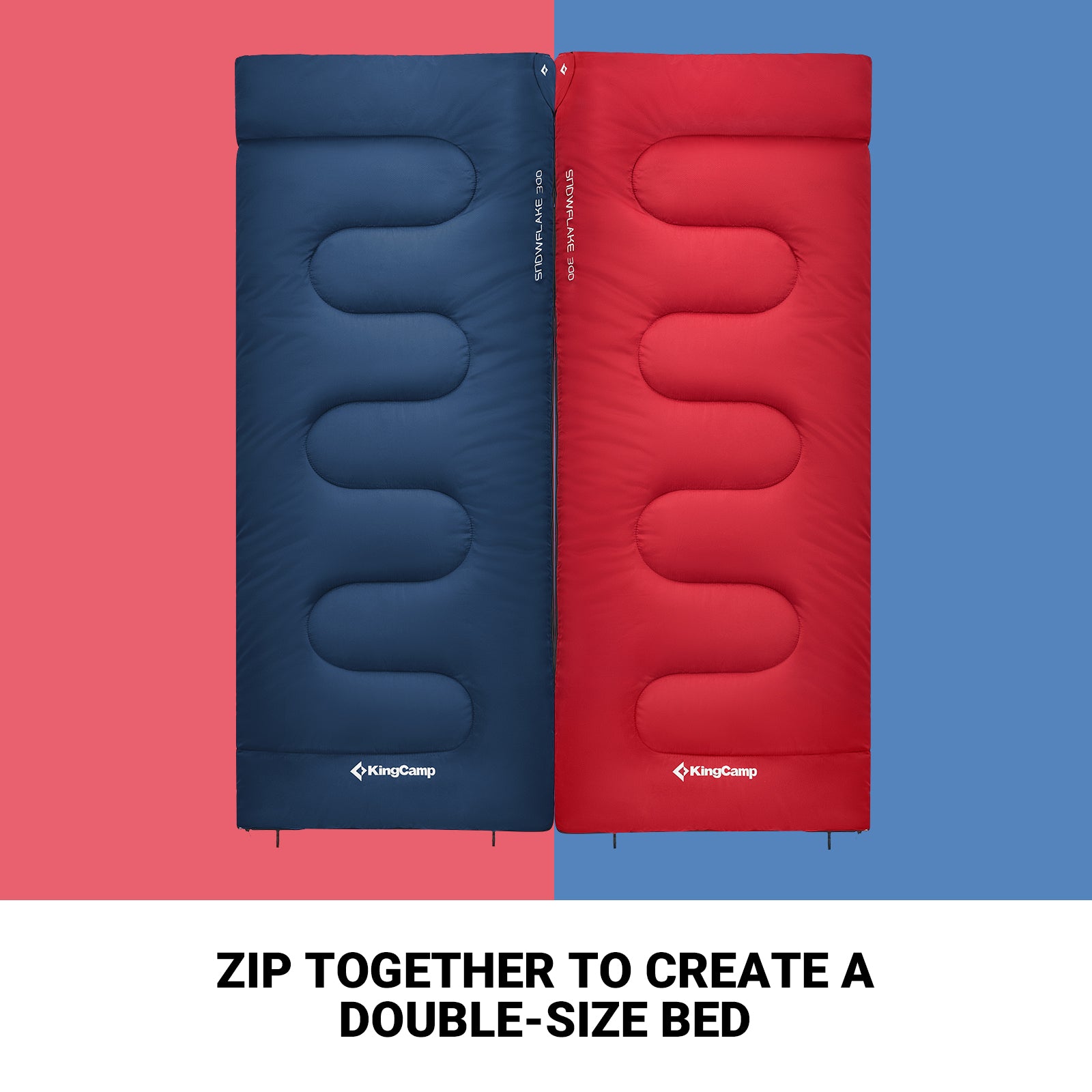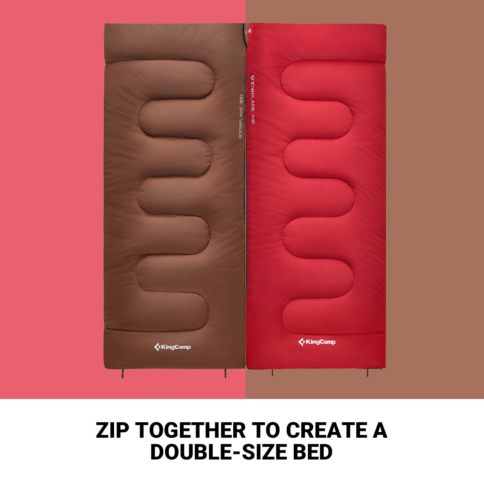 - Two single sleeping bags can be zipped to a double one